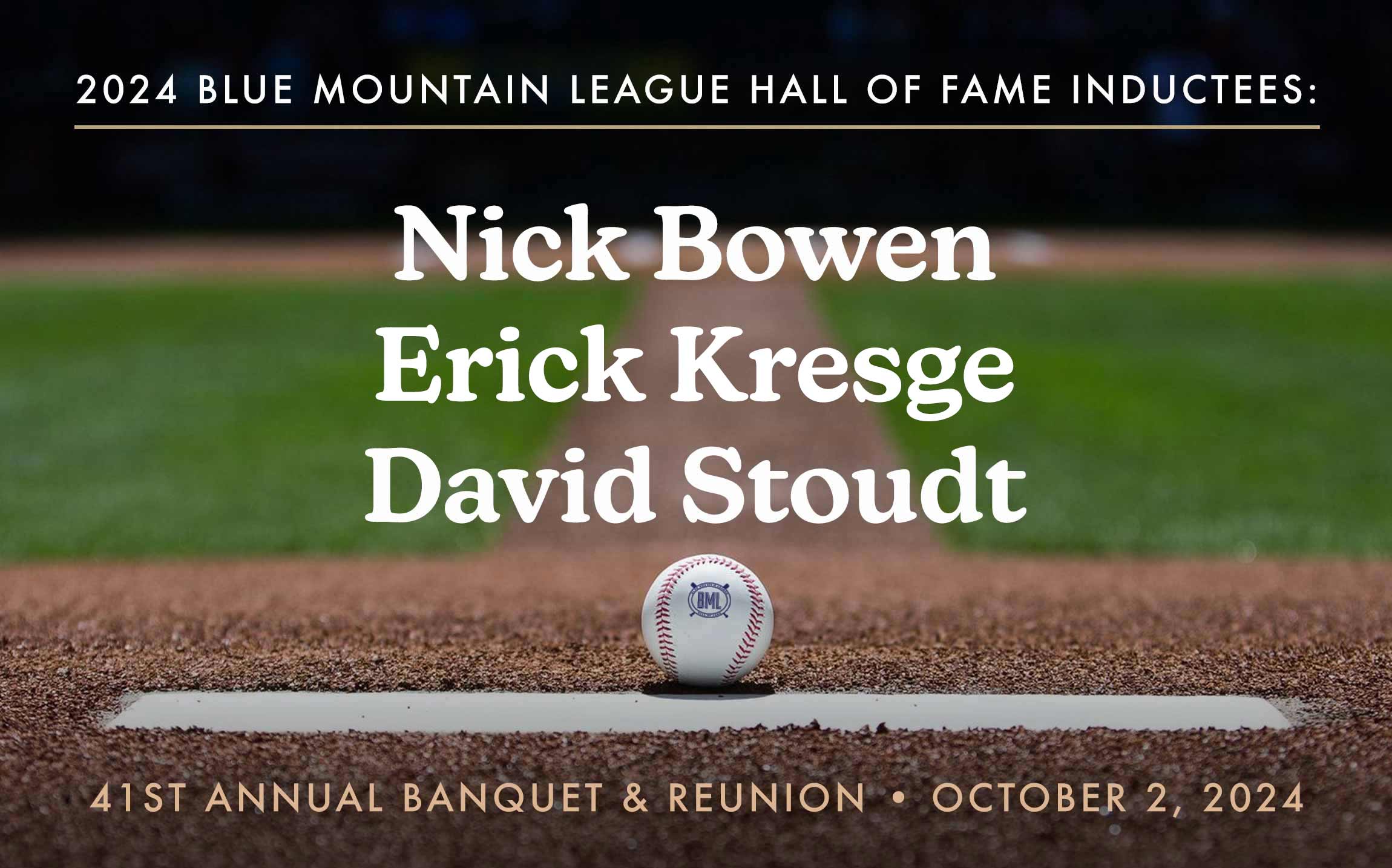 The 41st annual Blue Mountain League Hall of Fame banquet was held on Wednesday, October 2, 2024 at Green Pond Country Club in Bethlehem, PA. Congratulations to 2024 Hall of Fame inductees Nick Bowen, Erick Kresge, and David Stoudt.